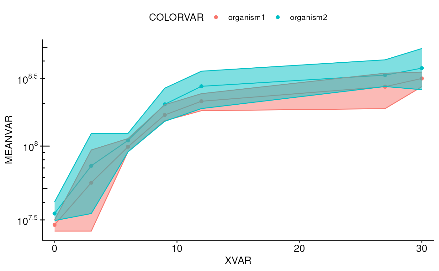 archaeacentre::plotGrowthCurve(testData, timepoint, concentration, grouping = c("timepoint", "organism"), organism, type = "robert") +